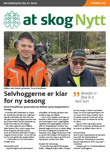 Her kan du lese vårt nyhetsbrev AT Skog Nytt som kommer ut med magasinet Skog. Magasinet Skog sendes ut til alle våre medlemmer 8 ganger i året.